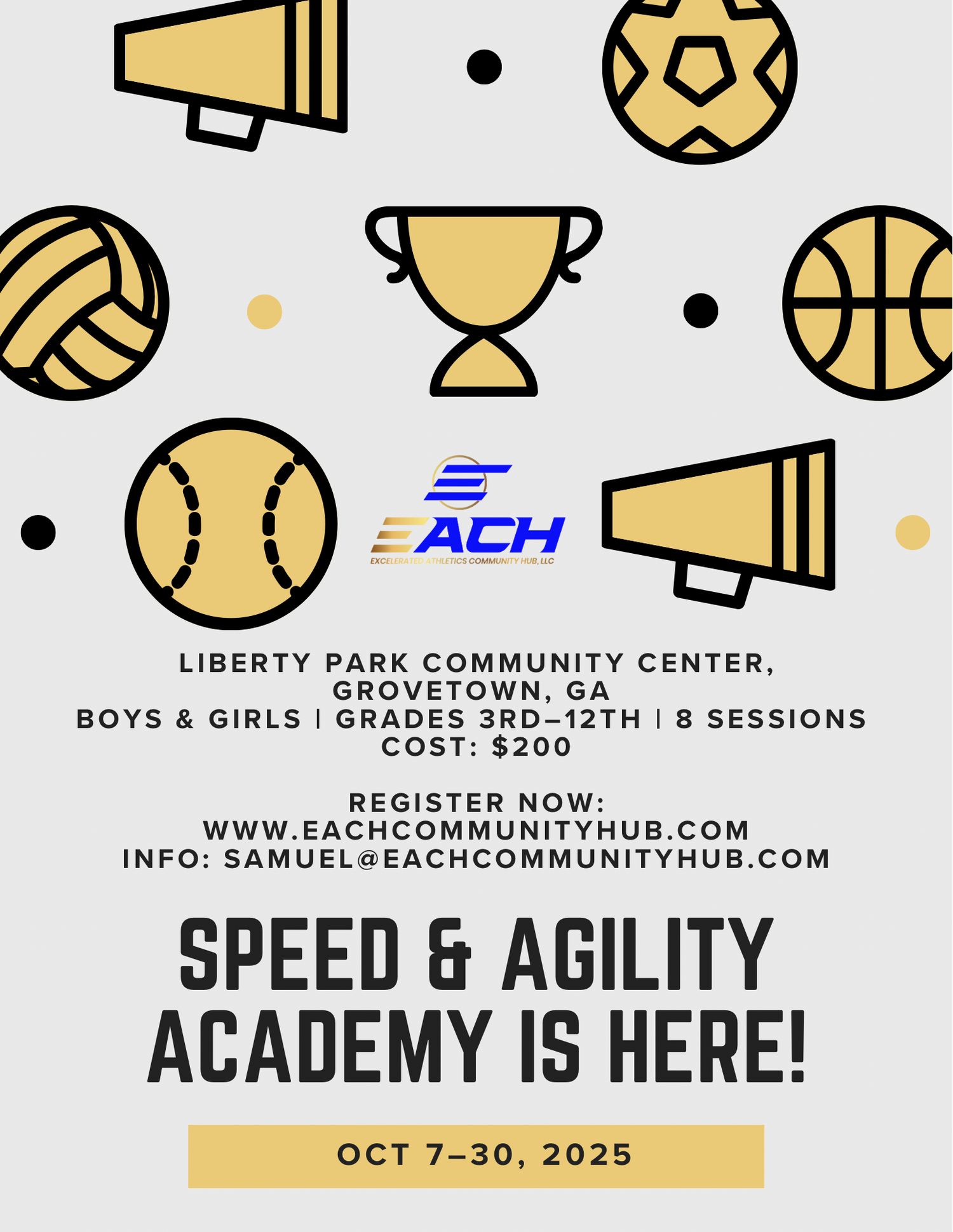 $200.00 EACH, LLC is a Holistic Sports Training Program dedicated to building athletes on and off the field.Dates: Oct 7–30, 2025 | Liberty Park Community Center, Grovetown, GA